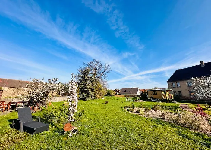 이 Ferienwohnungen Auszeit Am Geiseltalsee Stobnitz은 일광판, 소풍 공간, 정원뿐만 아니라 볼링, 사이클 타기, 낚시도 제공합니다. 아파트에서 Barockgarten Sankt Ulrich은 차로 5분 거리에 있으며 B134a는 차로 10분 거리에 있습니다.